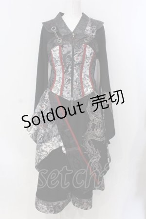 Qutie Frash / 龍プリントアシンメトリーキャミワンピース ブラック×パープル O-25-12-15-056-QU-OP-OW-OS