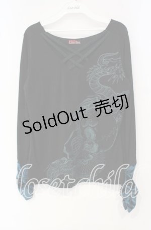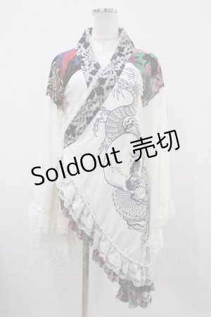 Qutie Frash / 龍プリント和柄切替ロングカットソー アイボリーX青X黒 I-25-09-18-076-QU-TO-HD-ZI