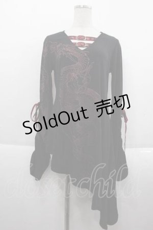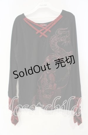Qutie Frash / 龍プリント和柄切替ロングカットソー ボルドー I-25-09-18-074-QU-TO-HD-ZI