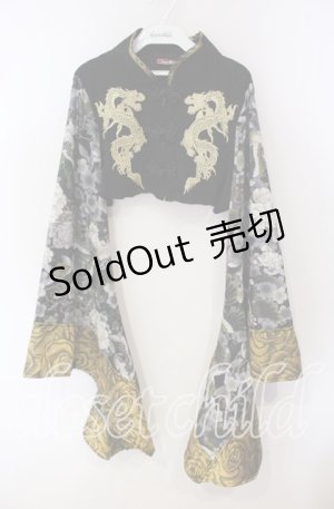 Qutie Frash / チャイナ着物ショートカーデ ブラック×イエロー O-25-09-23-124-QU-TO-OW-OS