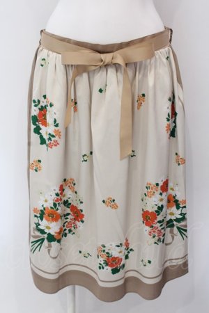an another angelus / スミレブーケプリントサーキュラースカート F ベージュ×パープル O-25-09-08-031-CA-SK-OW-ZT007