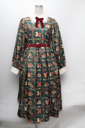 axes femme kawaii / RosyBear柄ワンピース グリーン O-25-11-11-2069-AX-OP-IG-OS