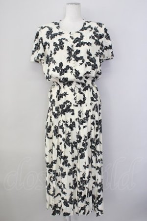 Ank Rouge / VintageRoseプリーツシフォンワンピース M アイボリー Y-25-09-13-066-CA-OP-SZ-ZT377