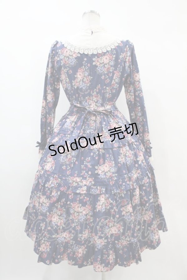 Innocent World / 薔薇と苺のティアードワンピース M ブルー H-24-04-01-025-IW-OP-NS-ZH [2100030000019907-H-24-04-01-025-IW-OP-NS-ZH]