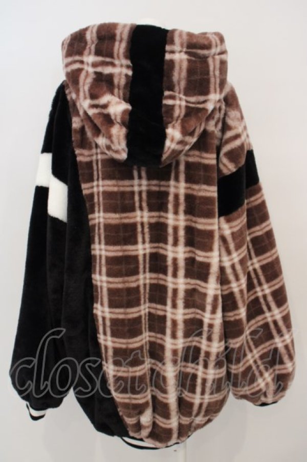 KMK / ロゴリボンチェックBIGボアアウター ブラック×ブラウン×ホワイト O-24-03-19-008-PU-CO-OW-ZT-C043 [2100080000013977-O-24-03-19-008-PU-CO-OW-ZT-C043]