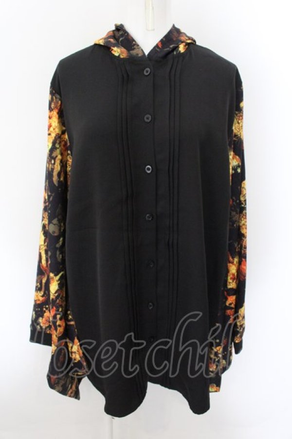 NieR Clothing / フード付き着物風袖ブロッキングシャツ【黄金錦鯉】 ブラック×イエロー O-24-10-22-059-PU-TO-IG-ZT332 [2100080000030684-O-24-10-22-059-PU-TO-IG-ZT332]