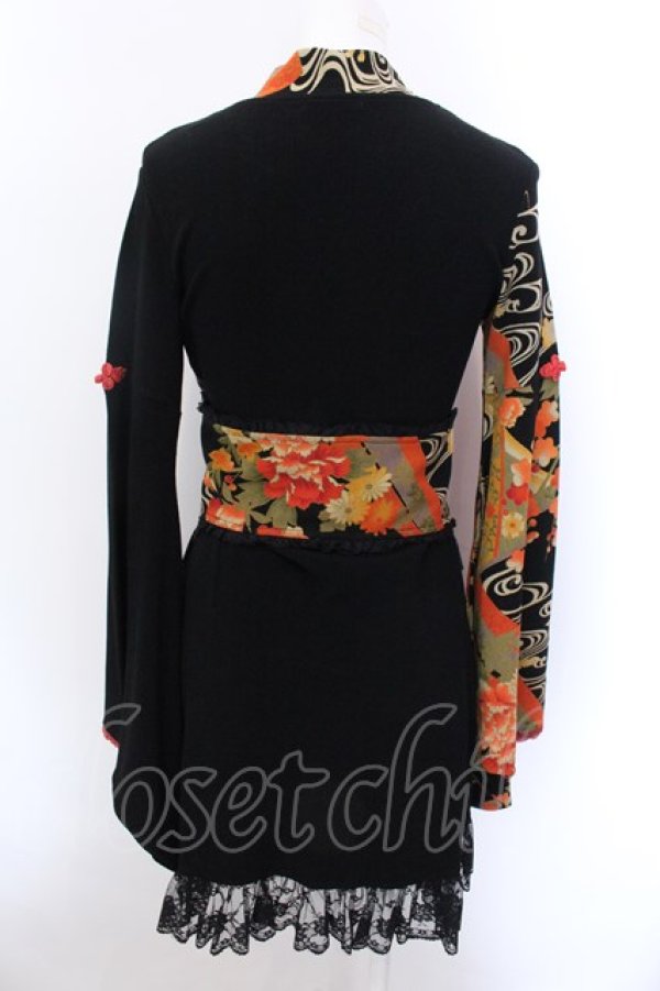 Qutie Frash / ちりめん切替着物袖トップス ブラック O-25-02-22-079-QU-TO-IG-OS [2100080000038008-O-25-02-22-079-QU-TO-IG-OS]