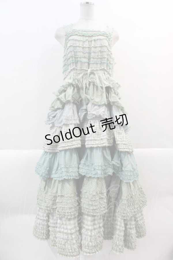 PINK HOUSE / 配色フリル使いキャミソールワンピース グリーン I-25-02-07-092-LO-OP-HD-ZI [2100060000029001-I-25-02-07-092-LO-OP-HD-ZI]