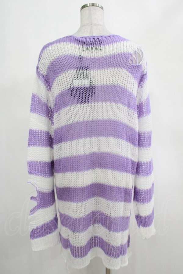KILL STAR / Viola Knit Sweater M ホワイト×パープル H-25-03-07-1048-SL-TO-KB-ZI [2100030000053431-H-25-03-07-1048-SL-TO-KB-ZI]