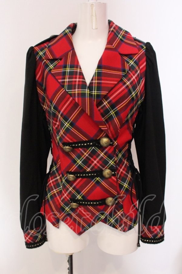 Qutie Frash / タータンダブルテーラードジャケット レッド O-25-05-13-021-QU-JA-OW-ZT200 [2100080000046126-O-25-05-13-021-QU-JA-OW-ZT200]