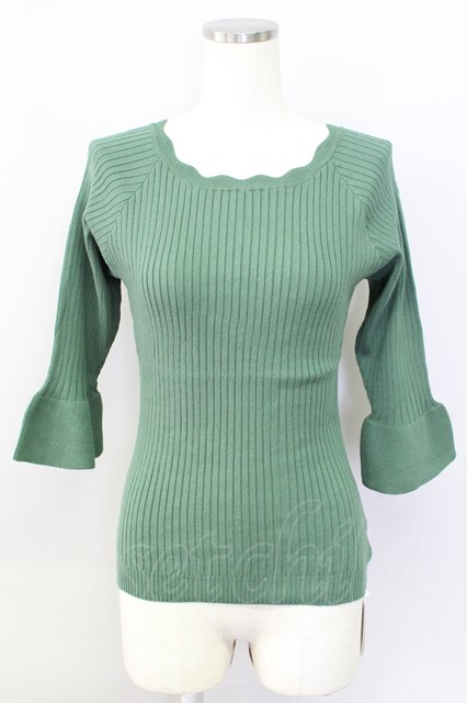 F&A / スカラップ使いリブニットプルオーバー グリーン T-24-02-11-005-LO-TO-HD-ZT002