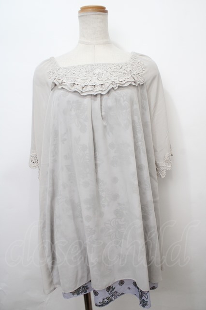 axes femme / リリー柄重ね着風チュニック M グレー Y-24-02-20-056-AX-OP-SZ-ZT259