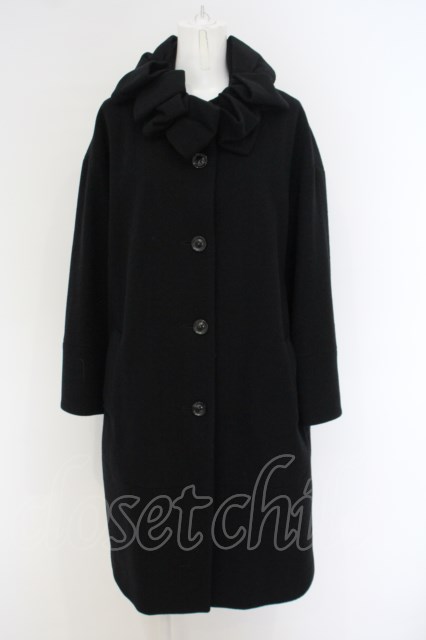 Jane Marple / Drape ribbon collar cocoon コート M クロ O-24-02-21-041-JM-CO-YM-ZTC029