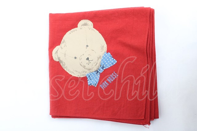 PINK HOUSE / かおくま大判ストール 赤Xブラウン Y-25-12-12-061-LO-ZA-SA-ZY