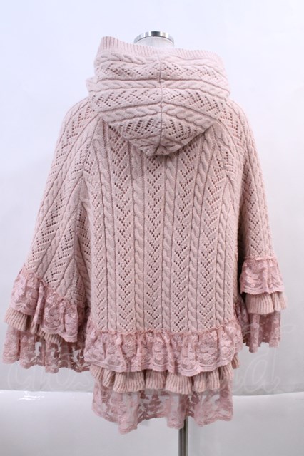 PINK HOUSE / レース使いリバーシブルニットポンチョ ピンク I-24-02-26-034-LO-JA-HD-ZT-C038