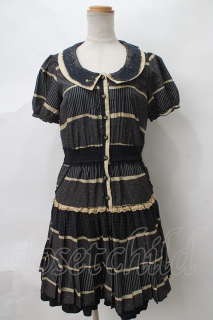 axes femme / ドットボーダー柄ワンピース M 紺 Y-24-03-15-120-AX-OP-SZ-ZI