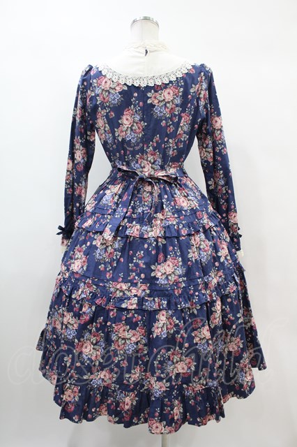 Innocent World / 薔薇と苺のティアードワンピース M ブルー H-24-04-01-025-IW-OP-NS-ZH