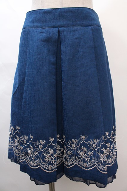 axes femme /刺繍入りタックスカート ブルー Y-24-06-11-132-AX-SK-AS-ZT015