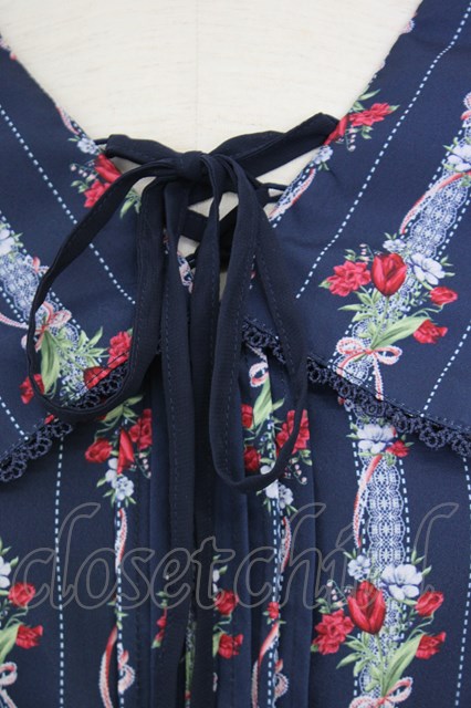 axes femme / ブーケリボン柄セーラーワンピース M 紺 T-24-07-11-026-AX-OP-SZ-ZT311
