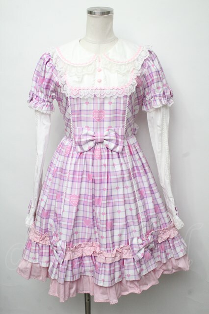 Angelic Pretty / Sprinkle Heart Tartanワンピース ピンクチェック S-24-07-23-059-AP-OP-HD-ZS