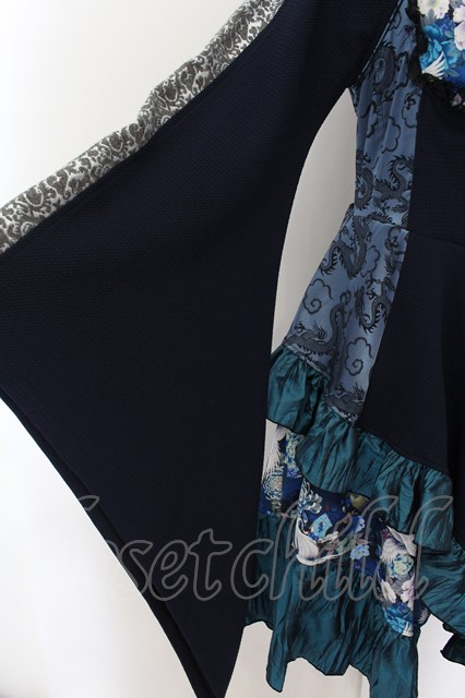 Qutie Frash / 皇帝衿ワンピース ブルー×ブラック O-24-07-25-014-QU-OP-OW-OS