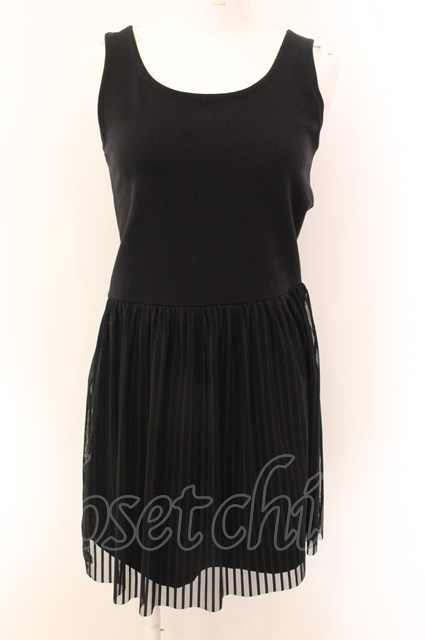 Na+H /シースルピンストライプワンピース(ノースリーブ) ブラック O-25-01-29-006-PU-OP-YM-ZT364