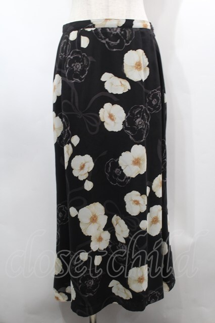 INGEBORG / カメリアリボン総柄スカート 黒 S-25-09-17-059-LO-SK-AS-ZT365