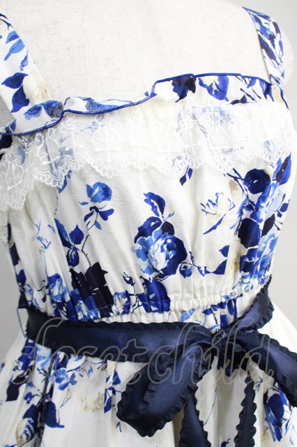 Moi-meme-Moitie / バラプリントジャンパースカート 2 白×ネイビー H-24-08-17-1013-MO-SK-KB-ZH