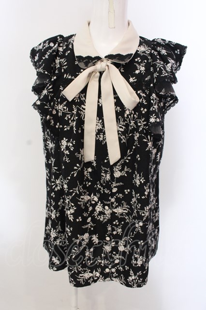 axes femme / 小花柄ノースリフリルブラウス M クロ O-25-02-26-1026-AX-BL-OW-OS