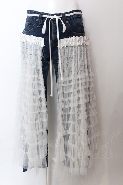 lilLilly / リメイクチュールデニムパンツ インディゴ×シロ O-25-02-19-1005-LO-PA-OW-ZT090