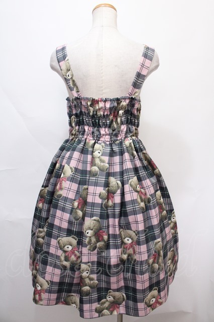 Emily Temple cute / Teddy Bear Tartanノースリーブワンピース ピンク Y-24-09-05-092-ET-OP-SZ-ZY