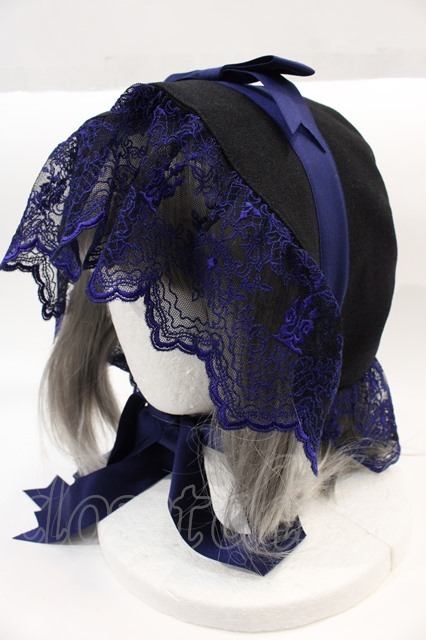 Moi-meme-Moitie / 燭台エンブレムボンネット 黒X青 I-24-08-30-012-MO-AC-HD-ZT424