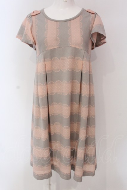 Emily Temple cute / スカラップレースジャガードワンピース グレーxピンク O-25-03-20-1041-ET-OP-HD-ZT238
