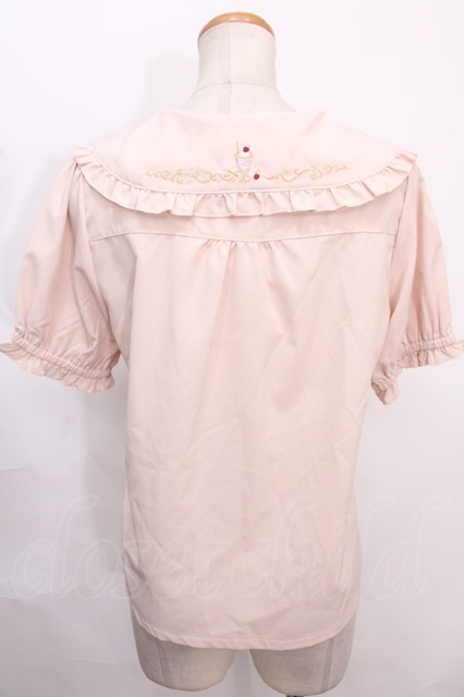 axes femme POETIQUE / レトロ喫茶刺繍パフ袖ブラウス M ピンク Y-24-09-25-075-AX-BL-SZ-ZT350