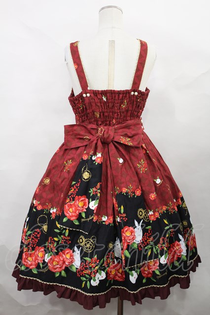 metamorphose / 和柄ジャンパースカート&リボンクリップセット(風花のゆきうさぎ) サイズ1(通常サイズ) エンジ H-24-10-29-1017-ME-OP-NS-ZH