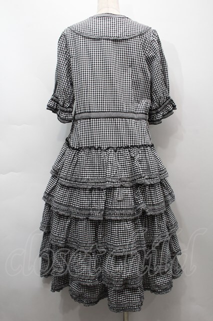 alcali / コットンギンガム前開きワンピース 黒x白 S-25-09-17-047-LO-OP-AS-ZS