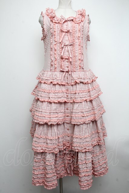 PINK HOUSE / ギンガムチェックパッチワークフリルワンピース ピンク S-24-10-17-045-LO-OP-AS-ZS