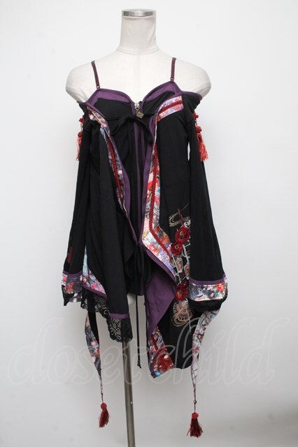 Ozz oneste / 着物デザイン羽織 黒 S-24-10-22-061-OO-TO-AS-ZS