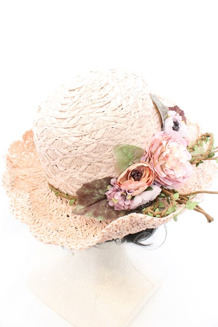 axes femme / フラワー雑材ハット ピンク O-24-11-09-020-AX-AC-OW-ZT-K004