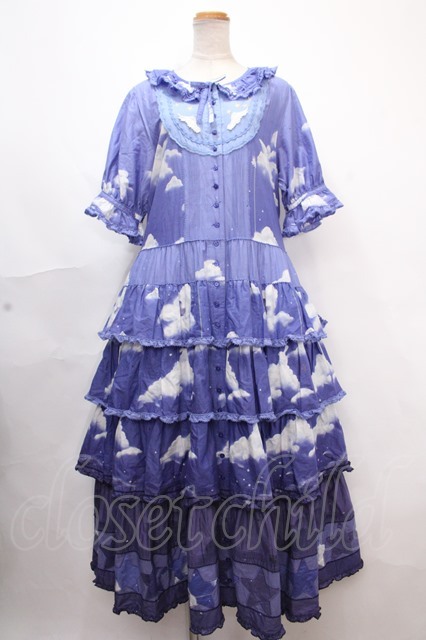 PINK HOUSE / 空プリントパッチワークワンピース ナイトブルー Y-24-11-18-179-LO-OP-SZ-ZY