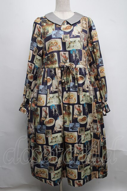 Perla nell' ostrica / ヴィンテージキャット襟付ワンピース M ネイビー S-25-07-13-058-EL-OP-SZ-ZT472 [戻る]
