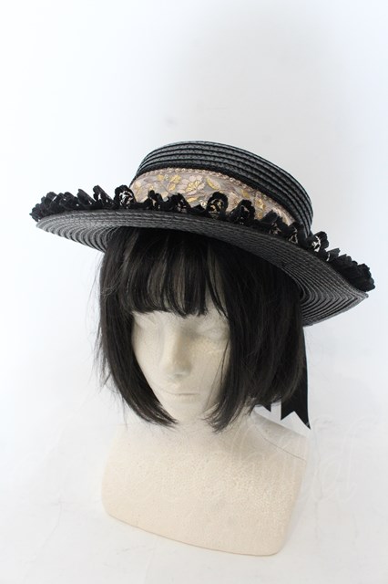 Triple fortune / コサージュ付きカンカン帽 ブラック O-24-11-26-100-EL-AC-OW-ZT286 [戻る]