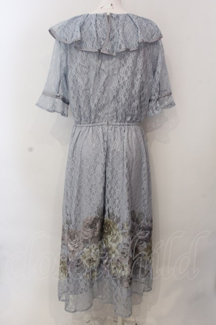 axes femme NOSTALGIE / レースプリント配色ローズワンピース F サックス O-25-02-26-1035-AX-OP-IG-OS