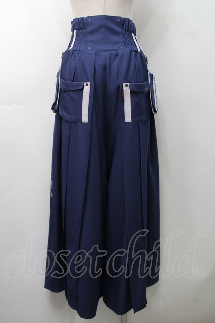 Ozz oneste / タッセルデザイン扇ハイウエストパンツ 青X白 S-25-09-05-053-OO-PA-SA-ZS