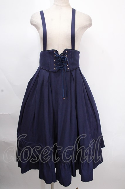 Amavel / Classical Doll サスペンダーミドルスカート 紺 Y-24-12-05-191-CA-SK-SZ-ZH
