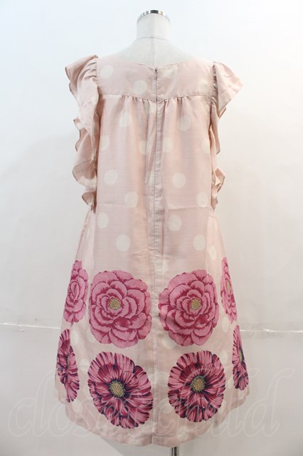 Emily Temple cute / 水玉&フラワープリントフリルノースリーブワンピース ピンク I-24-12-18-032-ET-OP-HD-ZI