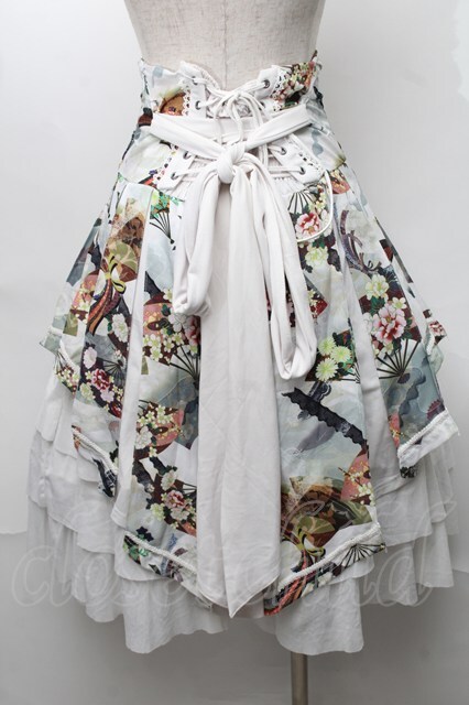 Ozz oneste / 和柄プリーツスカート 白xグリーン S-25-08-18-1021-OO-SK-AS-ZI