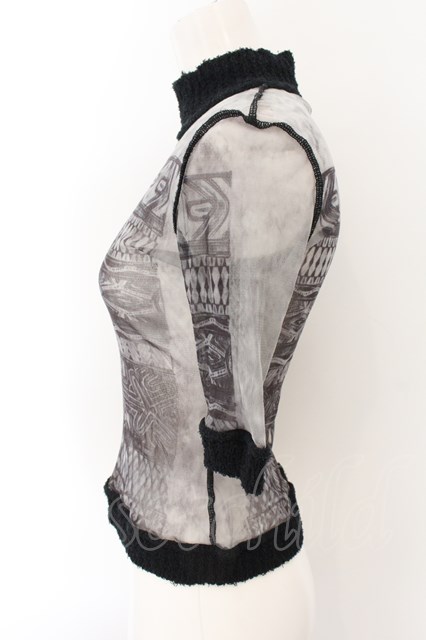 Jean Paul GAULTIER FEMME / パイル切替パワーネットトップス 40 グレー O-24-12-26-033-GO-TO-OW-OS