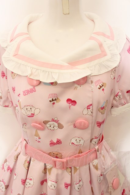 axes femme kawaii / mikko illustration × axes femme KAWAII ダイナーカフェワンピース M ピンク O-24-12-29-015-AX-OP-YM-OS