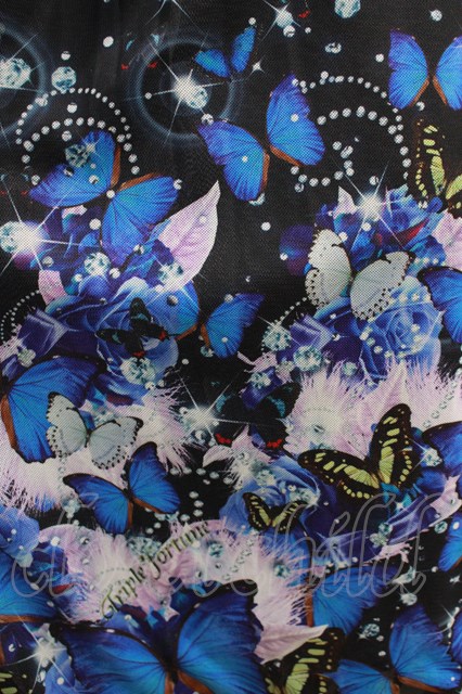 Triple fortune / チャイナカラーワンピース ミッドナイトバタフライ 黒×青 H-25-01-26-001-EL-OP-KB-ZH
